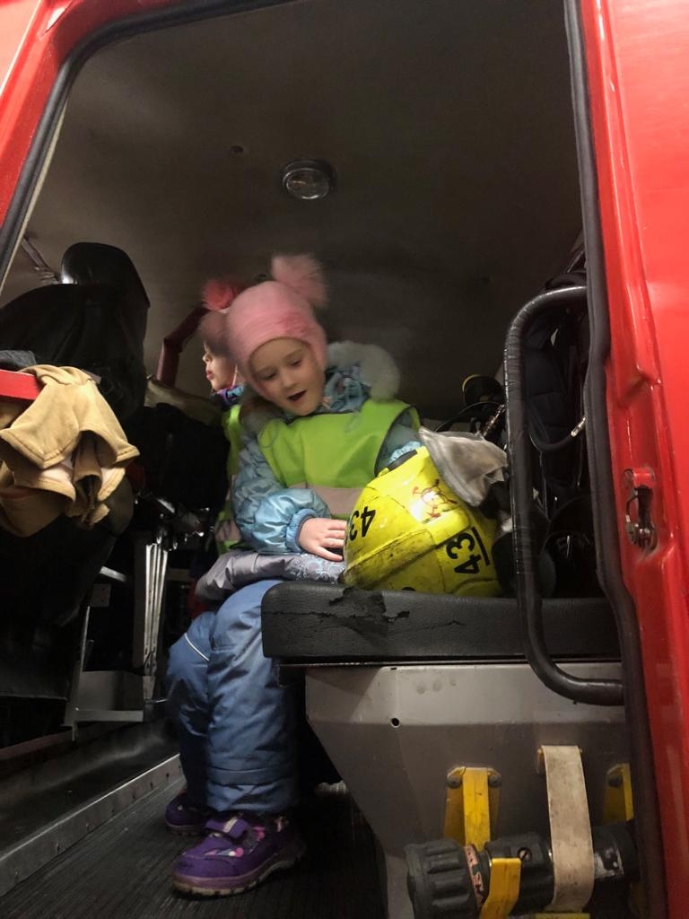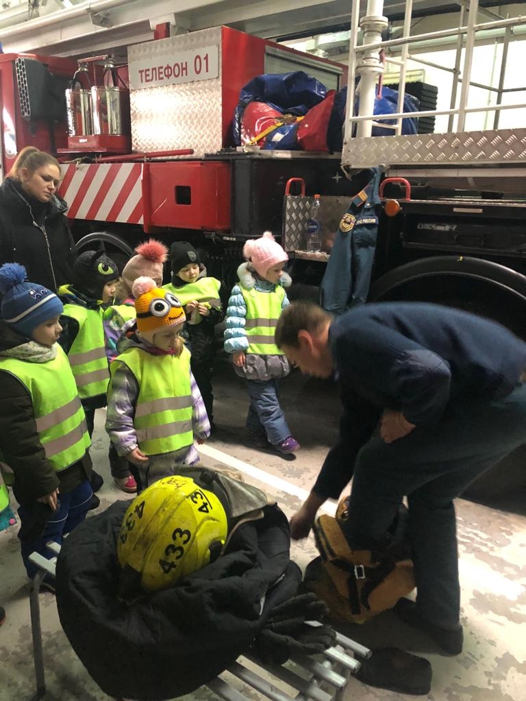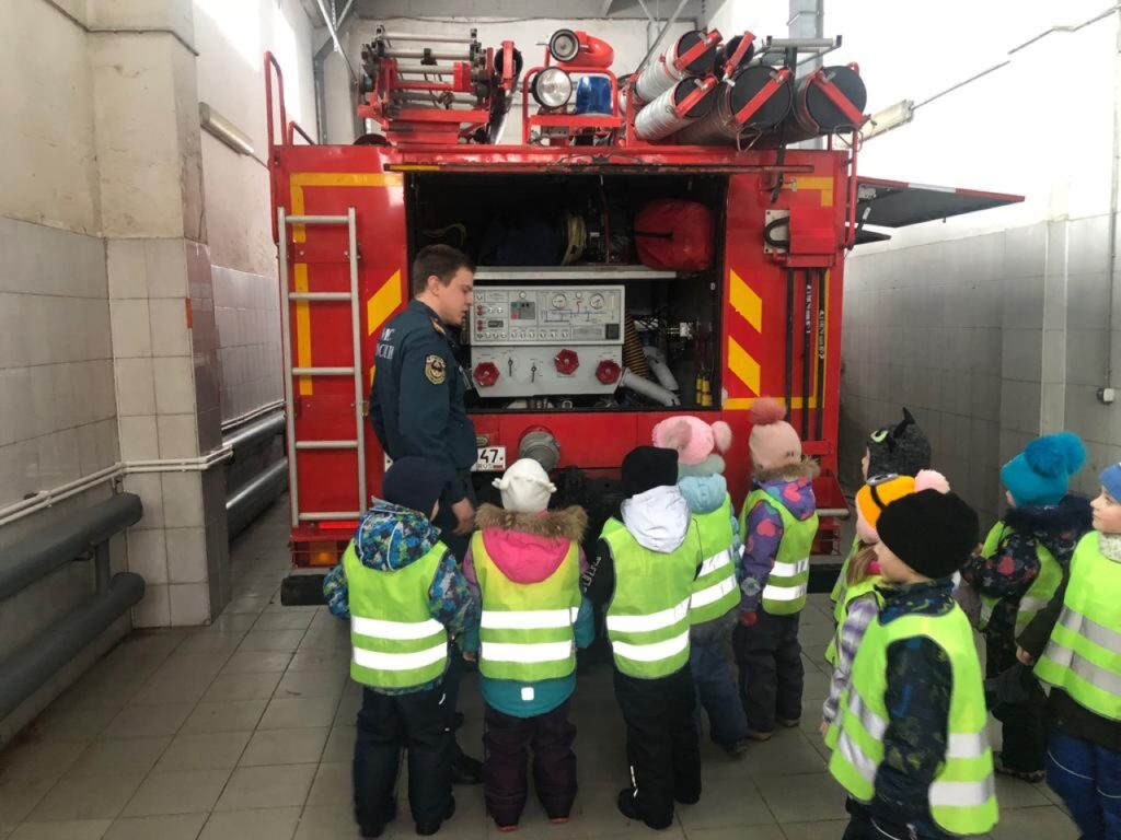 Для этого ребят привели на экскурсию в 43 пожарную часть г. Гатчина. Где им показали и пожарные машины, и как она работает, и какая боевая одежда у пожарных. Экскурсия удалась на славу. Всем было интересно. Все были в восторге!