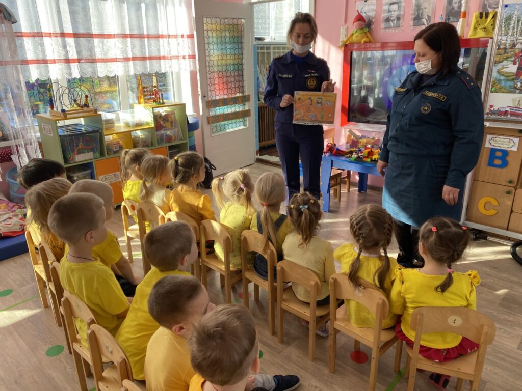 Сегодня, в детском саду №20 п. Войскорово состоялось профилактическое занятие по пожарной безопасности с воспитанниками средней и старшей группы.