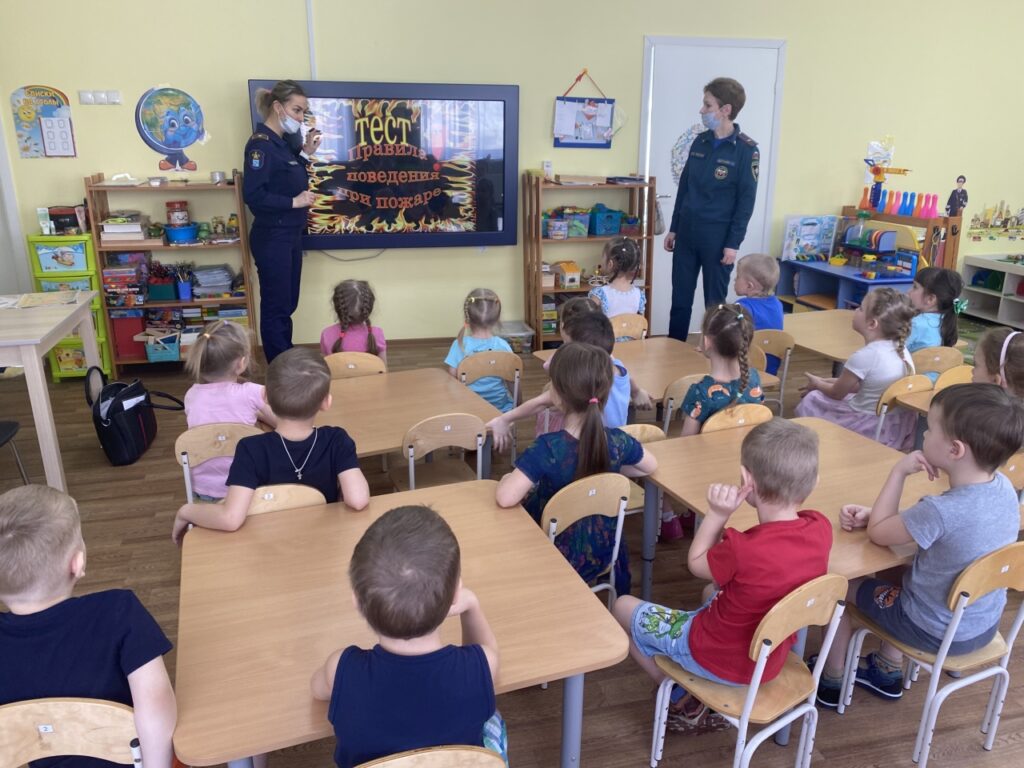 В практическом блоке урока ребята решали тесты на знание правил поведения на случай пожара — и отлично с ними справились! Назвали все самые важные правила: что нельзя прятаться от огня, пытаться самостоятельно его потушить, что важно как можно быстрее выбраться на улицу и связаться с службами спасения.