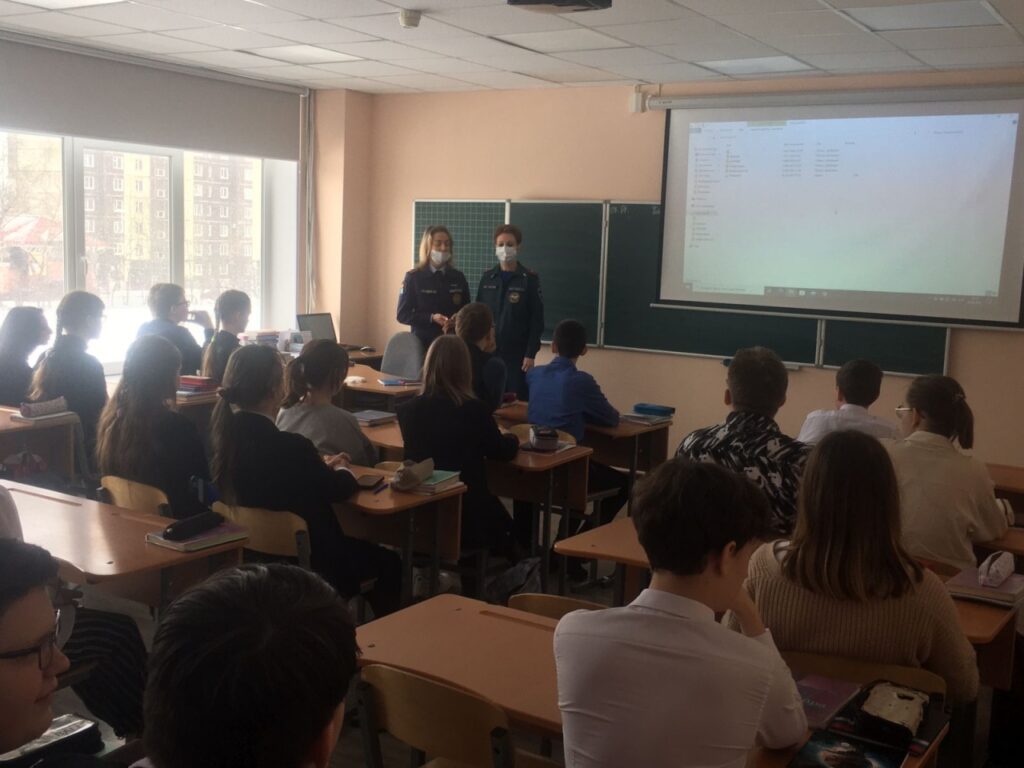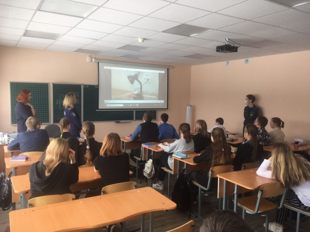 Ученики восьмого класса, вместе со своими гостями — сотрудниками отдела надзорной деятельности и профилактической работы Тосненского района и местного отделения ВДПО, разбирались какие же действия могут привести к пожару, как их избежать и что делать — если пламя все-таки вышло из-под контроля.