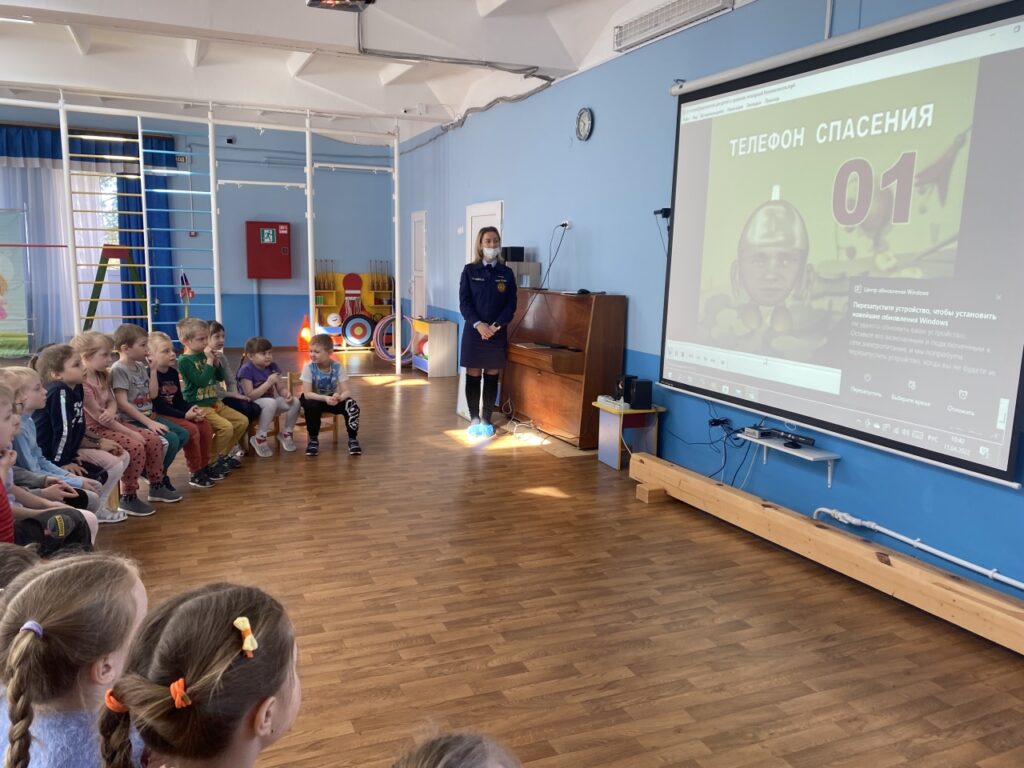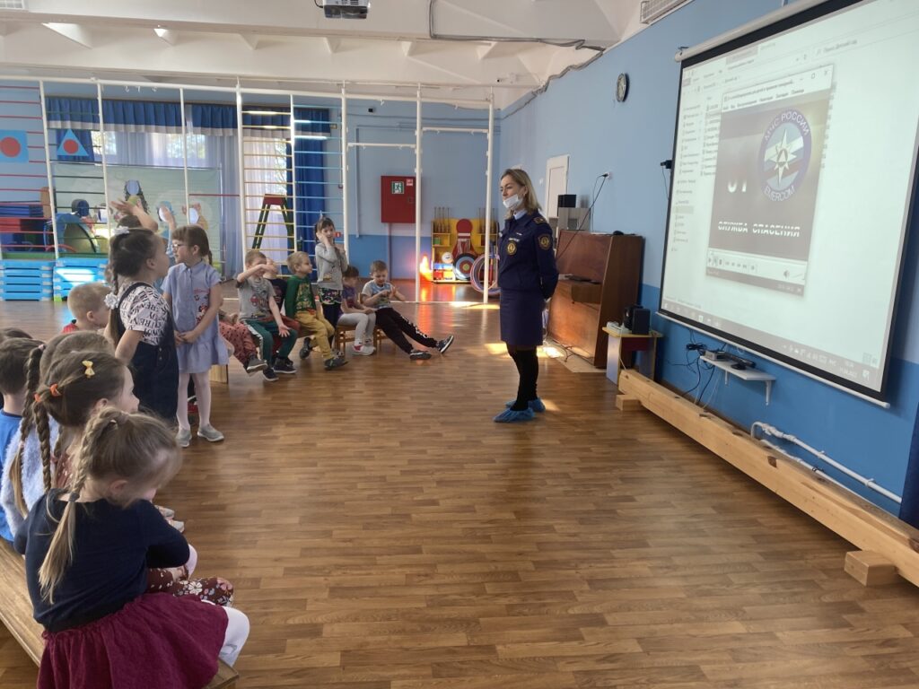 Встреча началась с активной беседы, в которой ребята делились своими знаниями, рассказывали, какие правила им уже известны. Дальше настала очередь гостей дополнять знания детей — вместе с ними разбирать, как же правильно себя вести, чтобы не допустить возникновения огня.