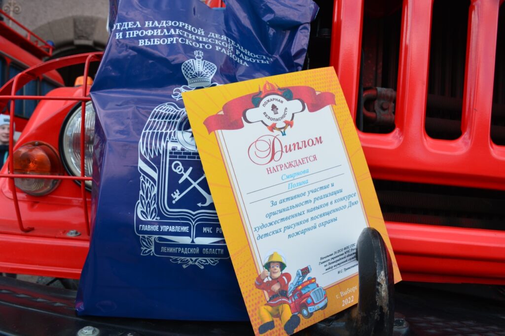 В преддверии профессионального праздника «Дня пожарной охраны России» 52 пожарно-спасательная часть 26 пожарно-спасательного отряда МЧС России совместно с Выборгским местным отделением ВДПО ЛО и ОНД и ПР Выборгского района распахнула свои двери для всех желающих. Территорию пожарной части разделили на тематические секторы, где каждый может попробовать себя в роли пожарного. Мероприятие началось с награждения детей, которые приняли участие в конкурсе рисунков, который проходил накануне, приуроченном ко Дню пожарной охраны. Всех частников наградили дипломам, приятными и, конечно же, нужными призами – светоотражающими значками, азбуками, грамотами.