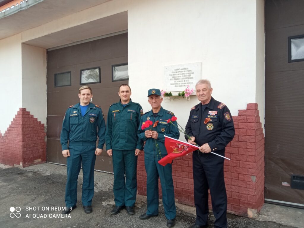 Перед началом торжественных мероприятий заместителем председателя совета МО ВДПО Миклиным В.Н., инженером противопожарной профилактики Вахтиной В.В., помощником начальника отряда ГПС Алиевым М.А. совместно с дежурным караулом 93 пожарной части были возложены цветы к мемориальной доске, посвященной ветерану В.О.В., начальнику Всеволожского отряда профессиональной пожарной охраны (ОППО) Карповой Антонине Кирилловне.