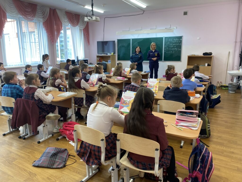Коснулись темы поведения в общественных местах — как реагировать на сигнал тревоги, как читать эвакуационные знаки и как правильно передвигаться в задымленных или опасных помещениях.