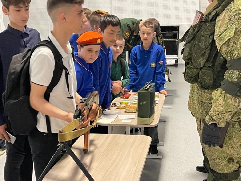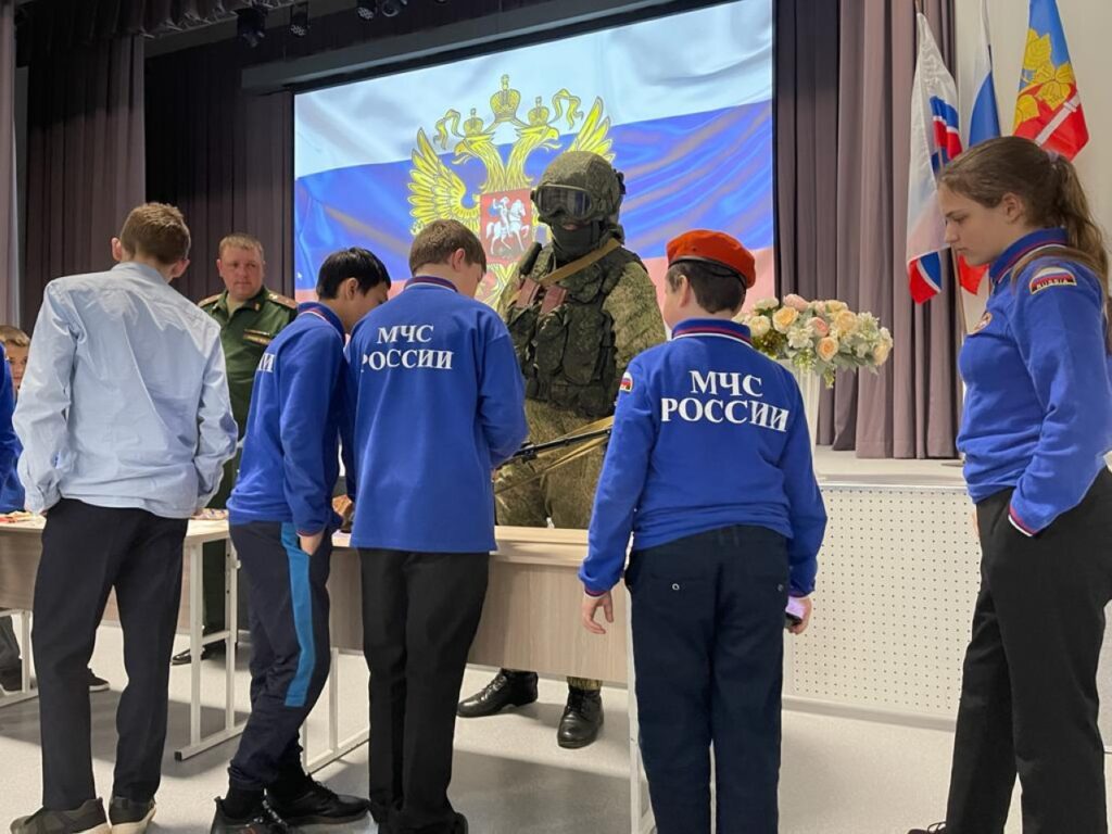 На мероприятие были приглашены председатель совета Ломоносовского местного отделения ВДПО ЛО Мангасарян С.Г., действующие военнослужащие ВЧ поселка Горелово. Главная цель мероприятия — военно-патриотическое воспитание молодежи, формирование патриотического сознания, чувства преданности к Отечеству. Военные продемонстрировали учащимся современную экипировку военнослужащего РФ, рассказали историю создания части.