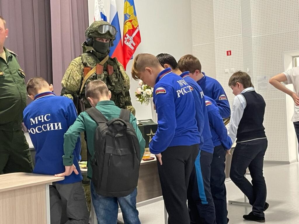 Также в ходе мероприятия в торжественной обстановке трое учащихся вступили в ряды ДЮП «Пламя», созданной на базе школы. Председатель совета ЛМО ВДПО ЛО вручил ребятам оранжевые береты МЧС, удостоверения ДЮП и значки.