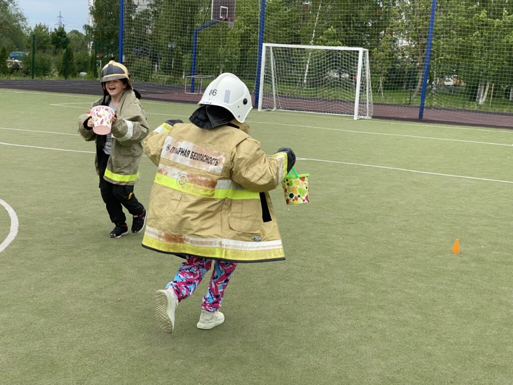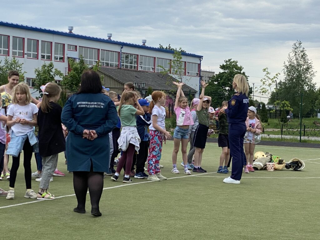 В гости к ребятам приехали сотрудники отдела надзорной деятельности и профилактической работы Тосненского района, местного отделения ВДПО и инструктор противопожарной профилактики ПЧ №111 им. Е. В. Рукавишникова и привезли с собой не только отличное настроение, но и увлекательные эстафеты.