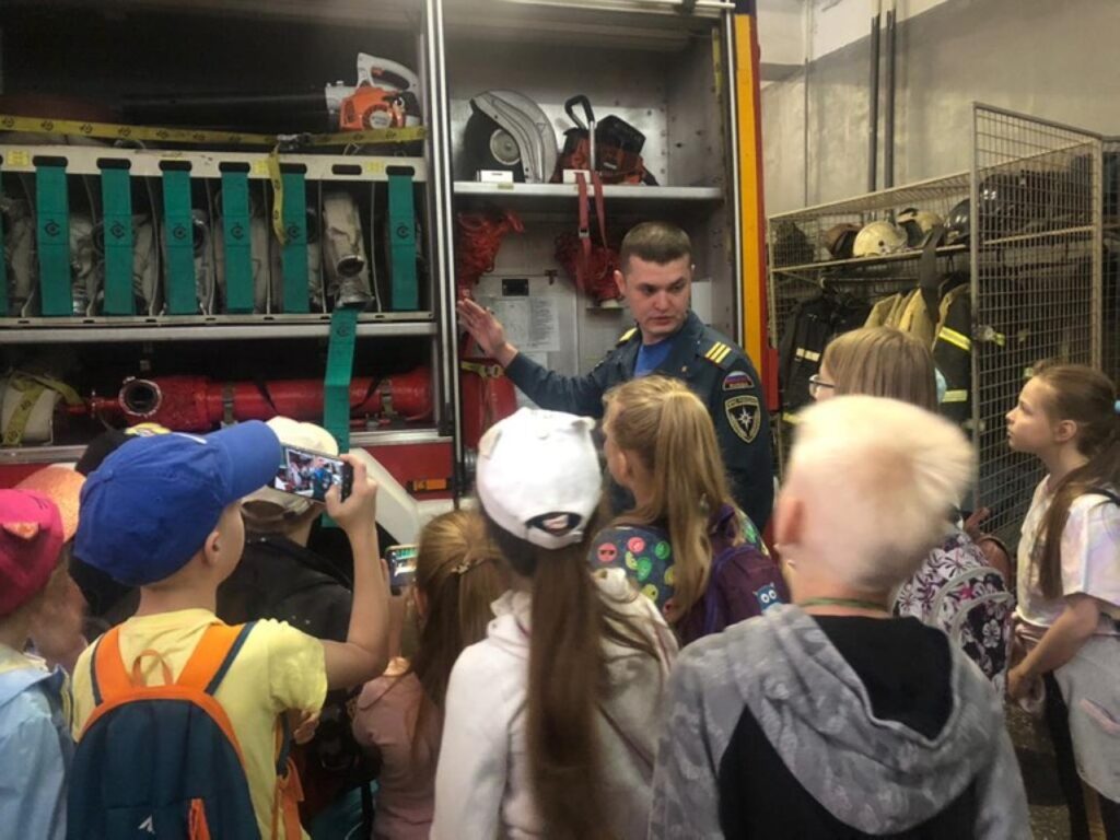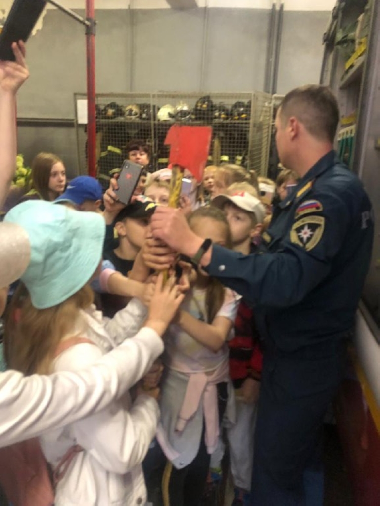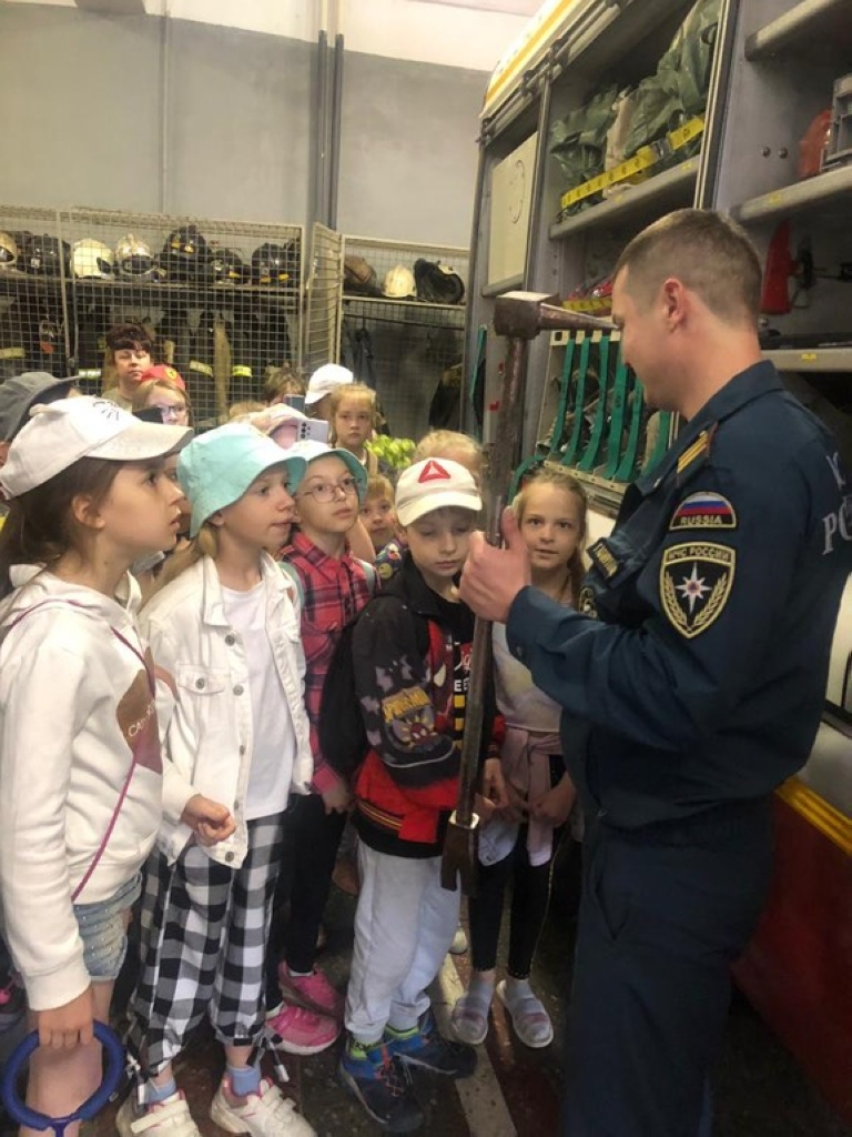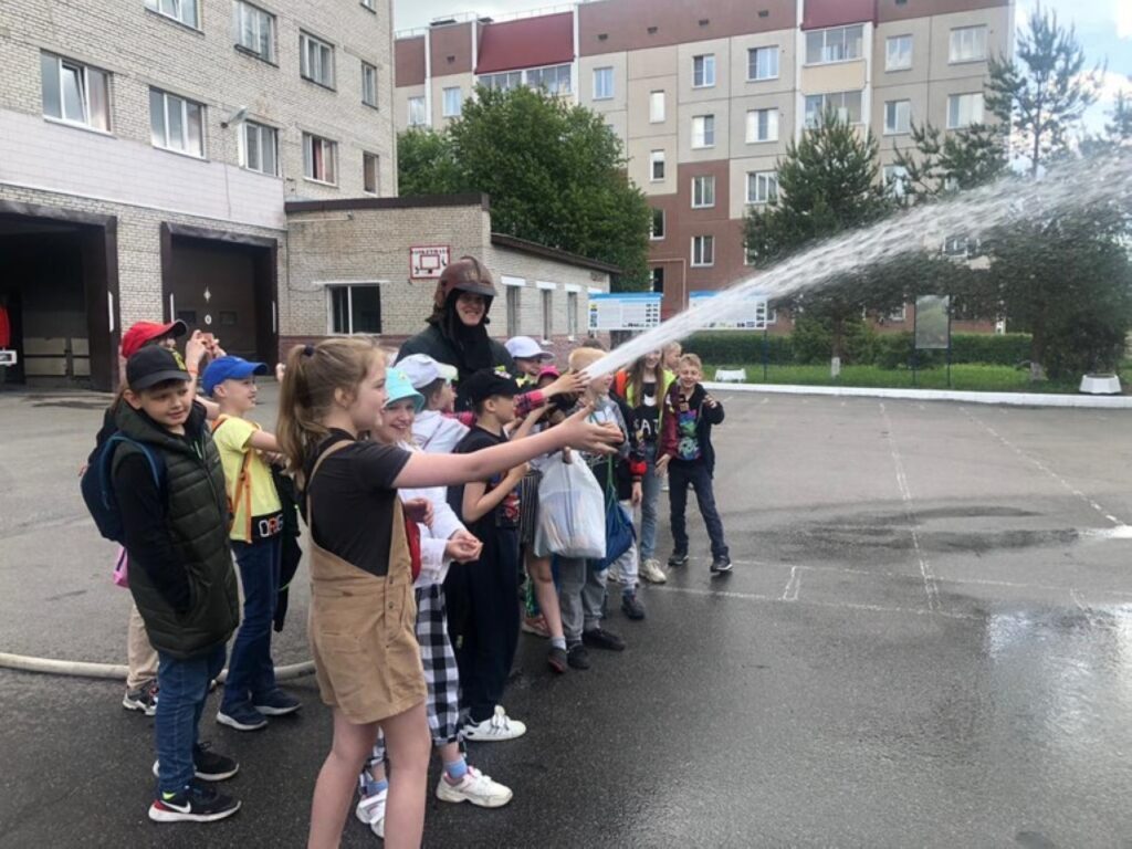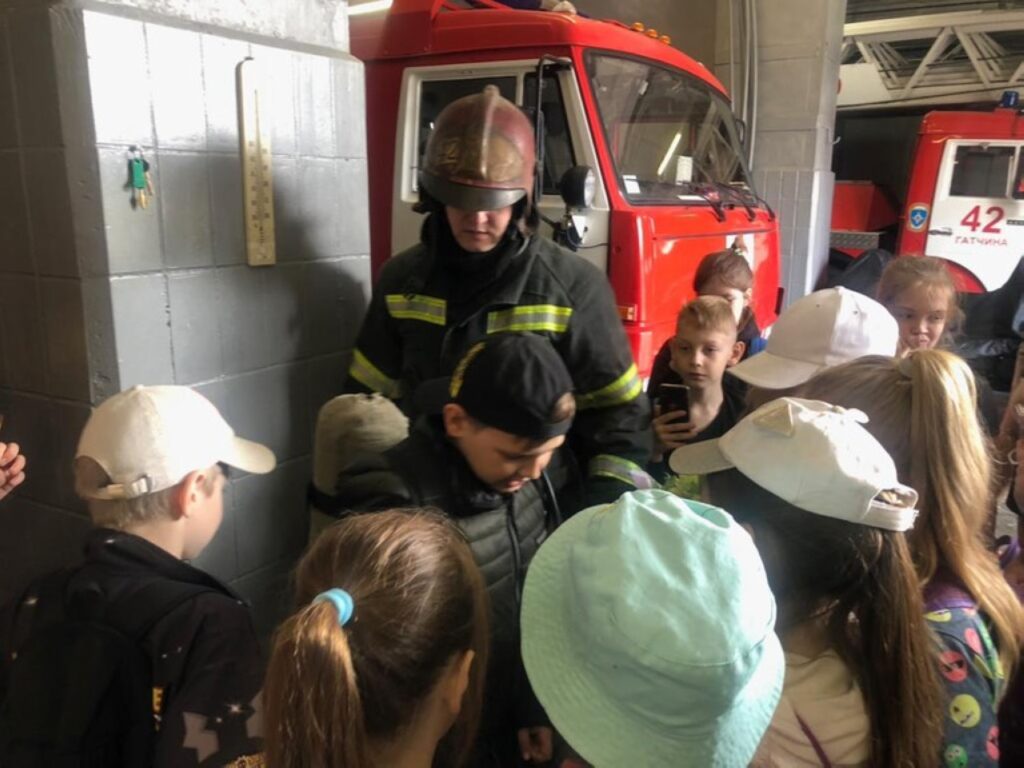 9 июня сотрудниками Гатчинского МО ВДПО ЛО организована и проведена экскурсия в 42 ПСЧ г. Гатчина для отряда пришкольного лагеря МБОУ «Гатчинская СОШ №9». Учащиеся 4-5 классов познакомились с бытом представителей спасательного ведомства, пожарно-спасательным инвентарём, пожарными автомобилями. Было интересно все: машины, люди, здание. Но самое интересное ждало в конце. Пожарные оделись в боевую одежду и завели пожарную машину. Вода фонтаном пошла на воображаемый пожар. Как здесь не воспользоваться и не побаловаться под дождем. Тем более погода была замечательная, настроение еще лучше. «Пожар» потушили, сами намокли — но самое главное все живы и здоровы. Что и должно быть, когда на помощь приходят пожарные.