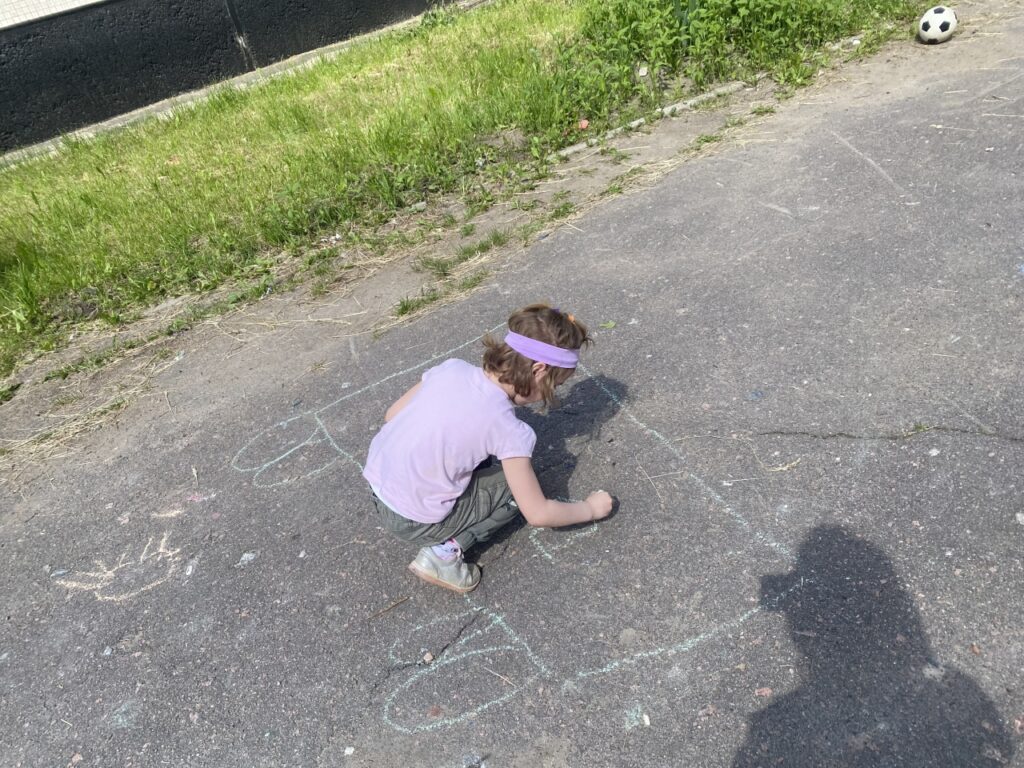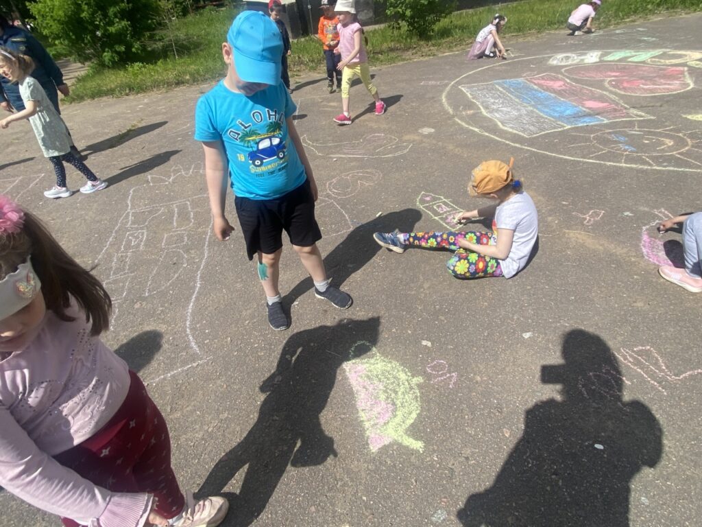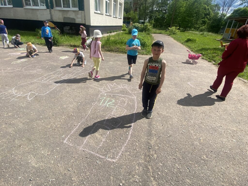 Во второй части мероприятия ребята смогли проявить свой творческий взгляд на вопрос – с помощью мелков они рисовали прямо на асфальте перед зданием детского сада рисунки, которые бы иллюстрировали все-все правила, которые они повторили и вспомнили.