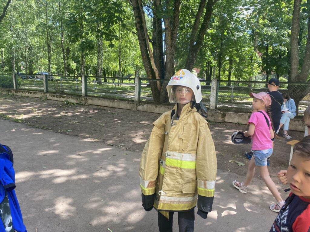 В конце занятия ребятам представилась возможность примерить на себя некоторые элементы пожарного обмундирования и представить себя в роли настоящего огнеборца.