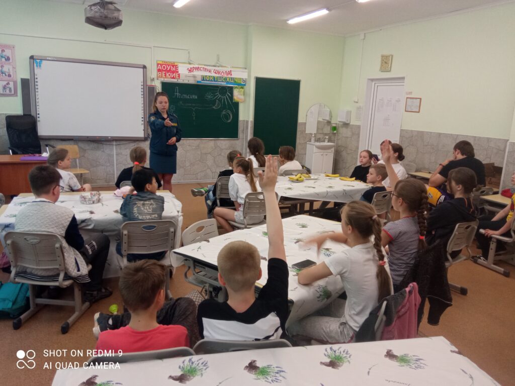 Инструктор противопожарной безопасности отряда ГПС Корнеева Александра и заместитель председателя совета МО ВДПО Миклин В.Н. напомнили ребятам основные правила пожаробезопасного поведения в общественных местах, в школе и дома. Рассказали о наиболее опасных факторах пожара, степени угрозы людям. Еще раз напомнили номера телефонов вызова экстренных служб.