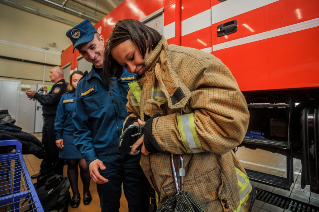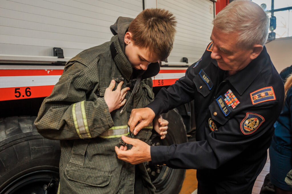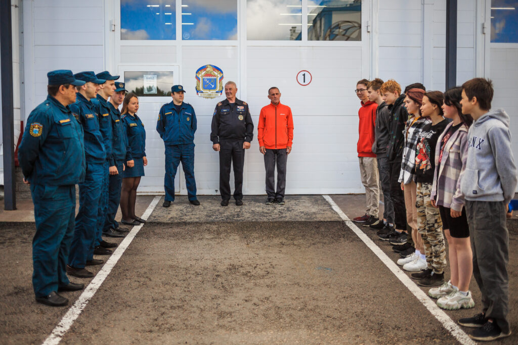 Первоначально была проведена экскурсия по все служебным и бытовым помещениям. Рассказано об истории пожарной охраны района, о профилактической и боевой работе пожарных.