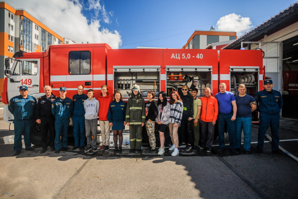 Ребята поблагодарили пожарных за интересные рассказы о своей профессии. На память был сделан общий снимок.