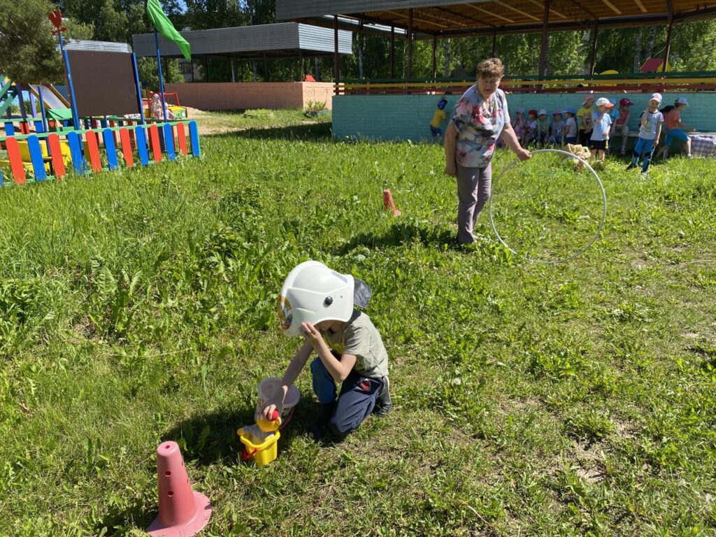 После теоретического блока встречи, ребятам предложили выйти на улицу и поучаствовать в целом ряде увлекательных эстафет – разделившись на команды воспитанники тушили условные очаги возгорания, пробирались сквозь препятствия и спасали из огня свои любимые игрушки.