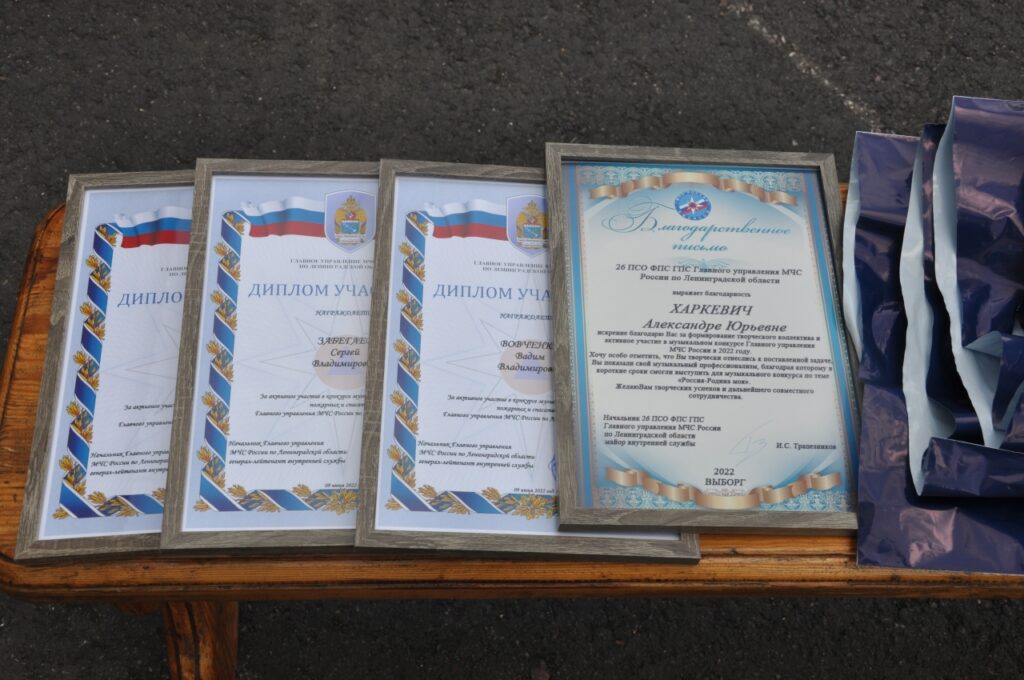 Личный состав представлен к награждению дипломами за участие от Главного управления МЧС России и маленьким призами на память от Выборгского местного отделения Всероссийского добровольного пожарного общества по Ленинградской области.