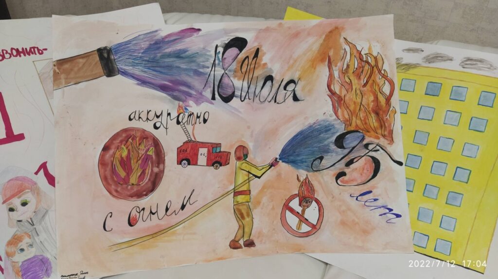 В мероприятии участвовали около 220 ребят, которые рисовали плакаты, одевали БОП на время, объясняли возможные пожароопасные ситуации, тушили условный пожар.