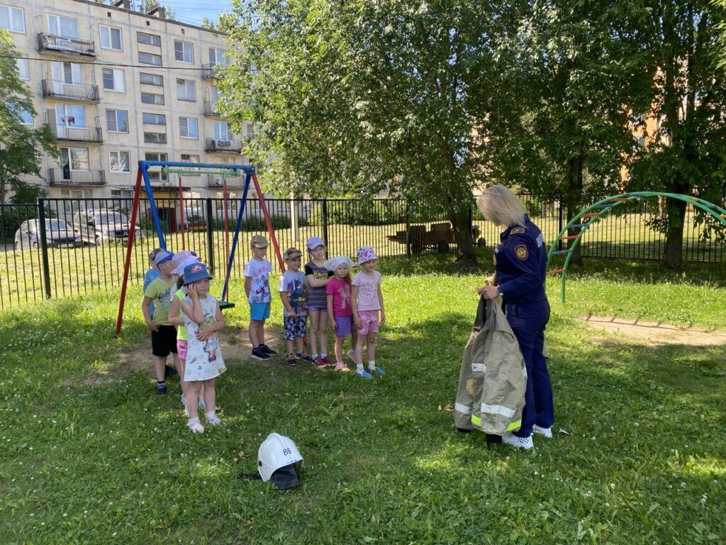 Ведь новая и сложная информация запоминается в разы проще, когда вокруг щебечут птицы и тепло светит солнышко. Ребята быстро включились в теоретическое обсуждение ключевых моментов по пожарной безопасности – большую часть правил поведения дома и на улице дети смогли назвать самостоятельно, приведя примеры из жизни.