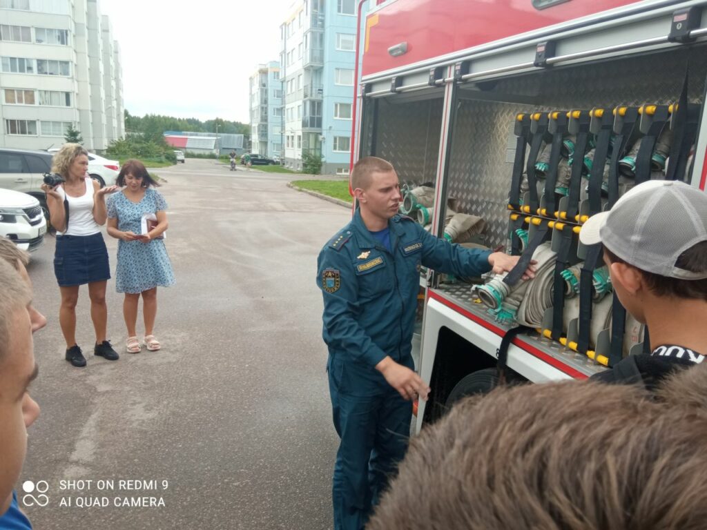 На встречу с пожарными пришли жители населенного пункта и учащиеся летнего трудового отряда. Личный состав караула показали боевую технику и пожарно-техническое оборудование. Рассказали об основных причинах пожаров и действиях в случае обнаружения возгораний.