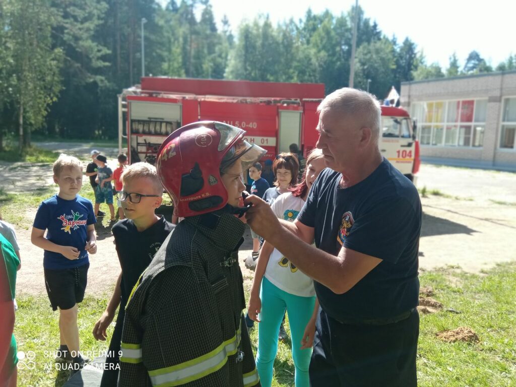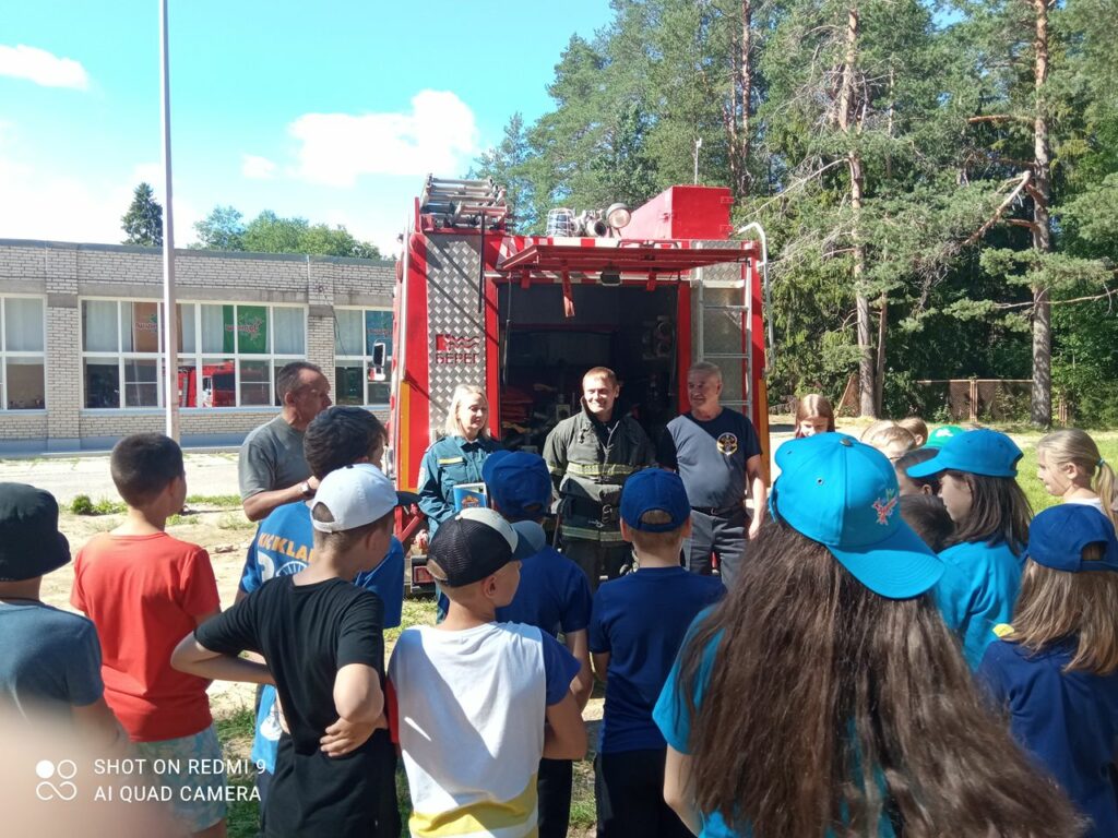Перед воспитанниками детского оздоровительного учреждения выступили инструктор противопожарной безопасности ОГПС Чеснова Виктория, заместитель председателя совета местного отделения ВДПО ЛО Миклин Валерий Николаевич.