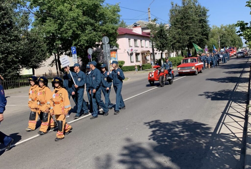 Торжественное открытие акции началось с праздничного шествия работников и ветеранов пожарной охраны.