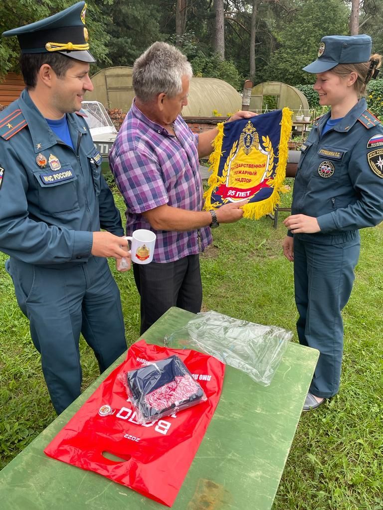 30 августа 2022 работники ОНД и ПР Ломоносовского района поздравили ветерана пожарной охраны, добровольного пожарного Ломоносовского района Аглоткова Виктора Васильевича с юбилейной датой – 95-летием Государственного пожарного надзора, передав памятные подарки от Ломоносовского местного отделения ВДПО ЛО.