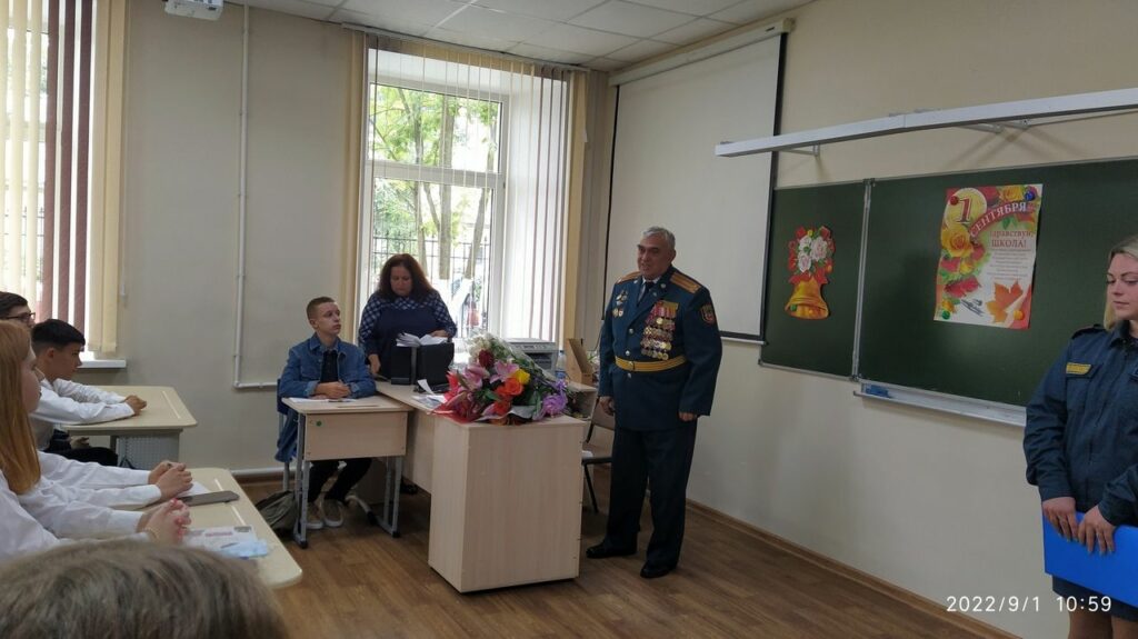 После всего этого мы сегодня пригласили дорогого ветерана в наш любимый 9 А класс для того, чтобы он рассказал историю своей жизни, историю побед, историю завоёванных медалей. Наш гость рассказал детям как надо жить в наше непростое, сложное время, что надо учиться, набираться новых знаний, навыков для того, чтобы быть отличным специалистом в любой области. Дети с интересом слушали своего гостя.