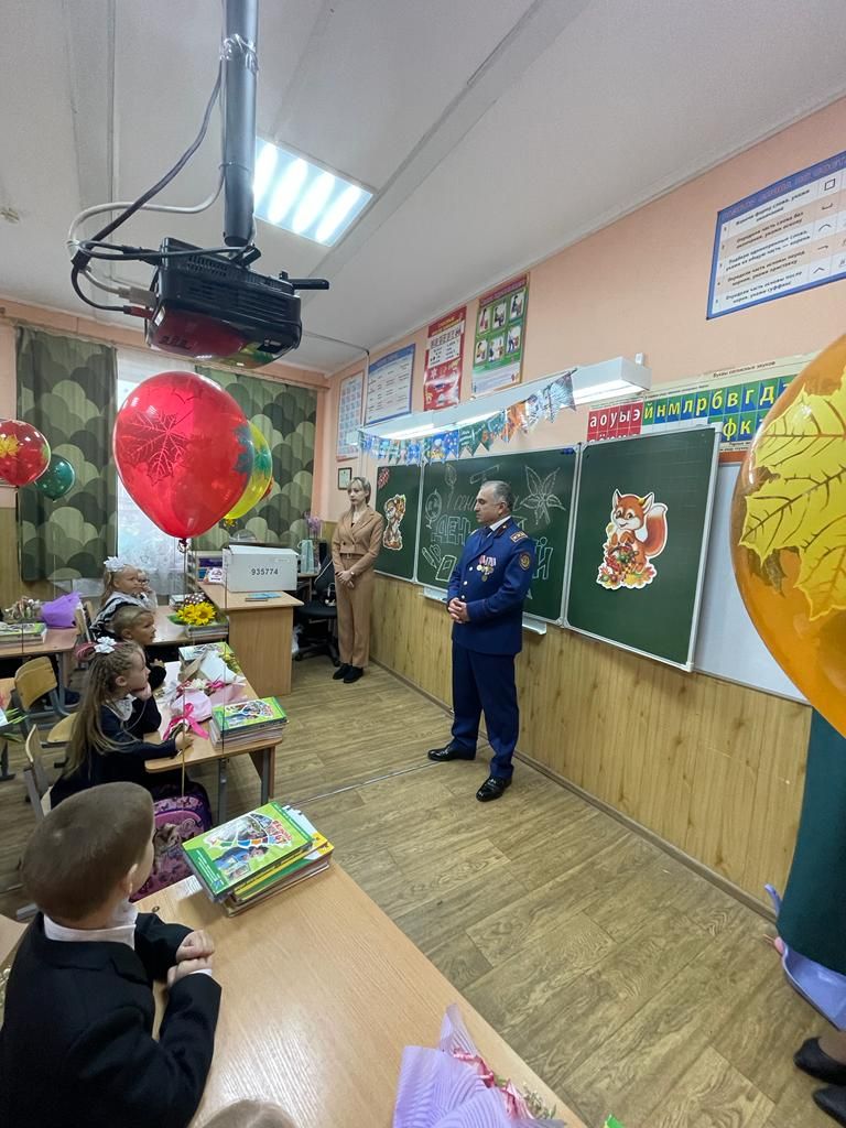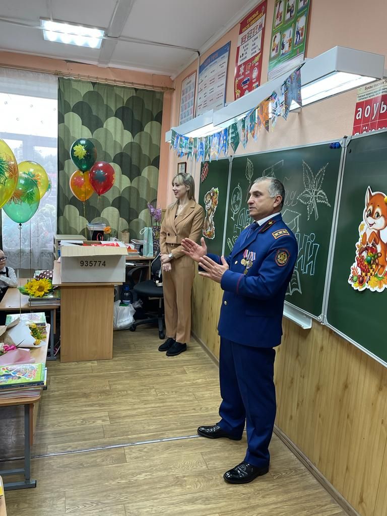После первого звонка малыши пошли знакомиться со своими классами и учителями. Сейран Георгиевич поздравил первоклассников с началом школьного пути, с Днем знаний, подарил подарки от Ломоносовского местного отделения ВДПО ЛО – канцелярские наборы, пожелав счастливого и результативного нового учебного года как для учеников, так и для их учителя.