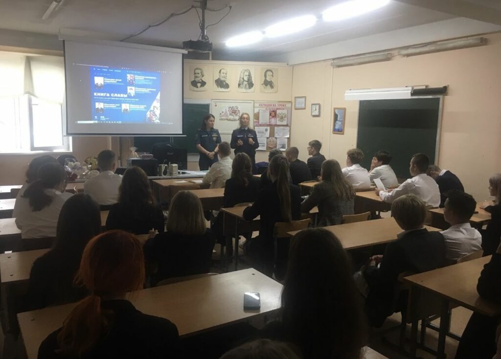 Ребята знакомятся с историей МЧС России — как и когда она была образована, как реформировалась с годами, а также гостьи демонстрировали ребятам «Книгу памяти МЧС России» и «Книгу Славы МЧС России», где рассказывается о судьбах выдающихся пожарных и спасателей, о мужестве и героизме огнеборцев при тушении пожаров и ликвидации чрезвычайных ситуаций.