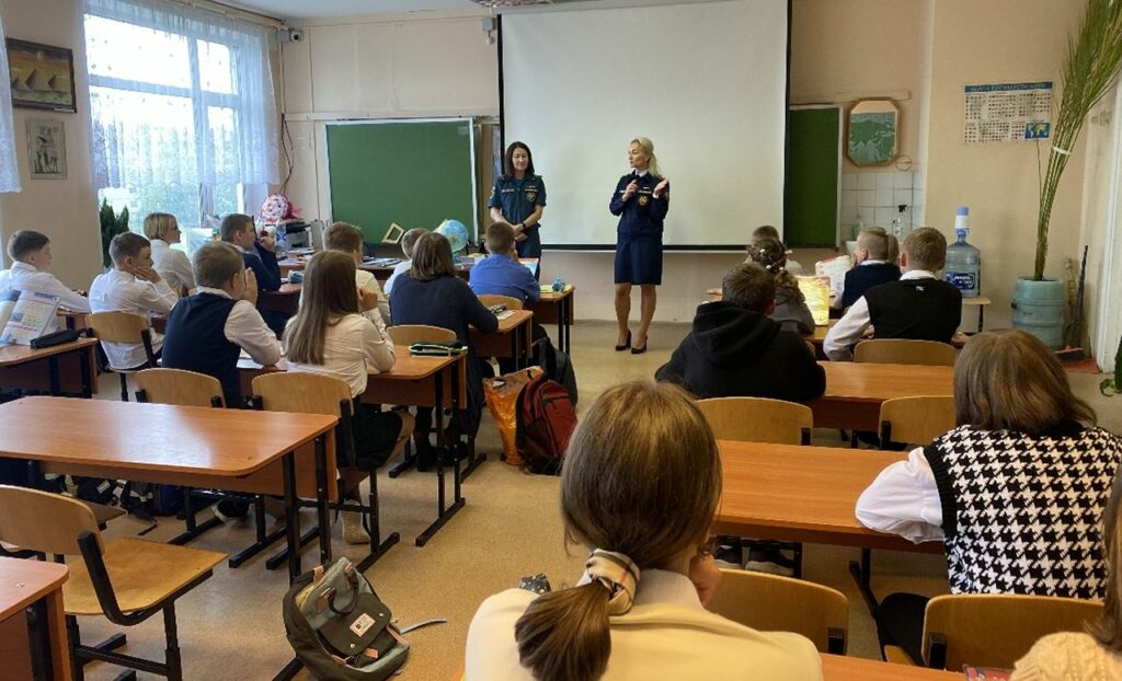 В рамках урока коснулись вопроса безопасности — какие правила важно и нужно соблюдать, чтобы не пострадать и не стать причиной пожара, а также какие действия предпринимать во время любых чрезвычайных ситуации.