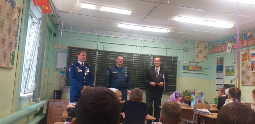 1 сентября 2022 года начальник Отдела надзорной деятельности и профилактической работы Кировского района Владимир Сабуров, председатель совета Кировского местного отделения Ленинградского областного отделения Общероссийской общественной организации «Всероссийское добровольное пожарное общество» Александр Никулин провели для учащихся первого класса МКОУ «Суховской ООШ» открытый урок на тему «Берегись огня».