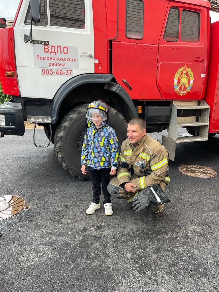 Только вчера познакомившись с ребятами из первых классов Нагорной школы Ломоносовского района, уже сегодня 2 сентября 2022 года работники пожарной части ЛМО ВДПО приехали на пожарной машине в гости к первоклассникам школы.