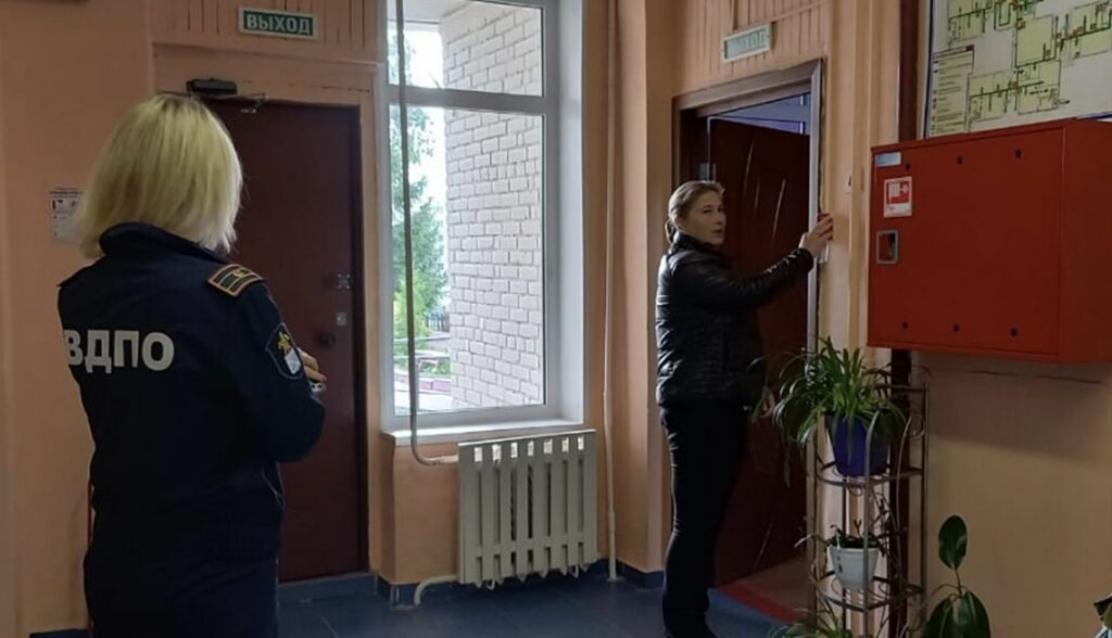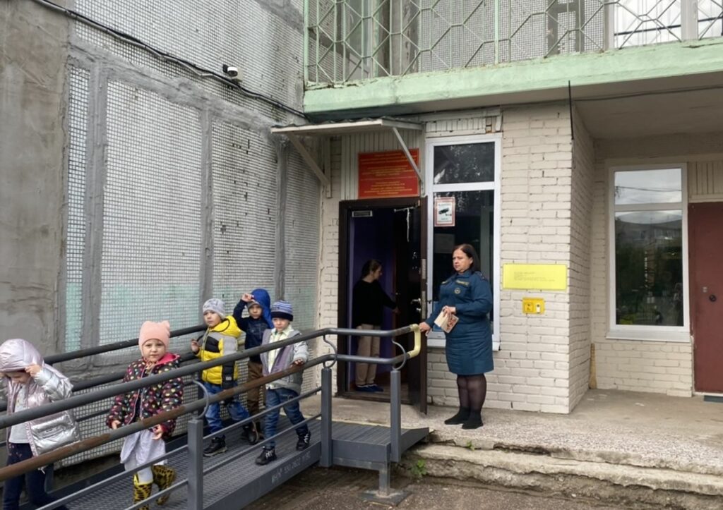 После сигнала тревоги, воспитатели и их подопечные оперативно выбегали на улицу по безопасным путям, минуя очаг возгорания, который находился в пищеблоке.