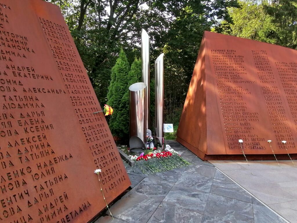 В память о погибших была отслужена заупокойная литургия. Прошла минута молчания. Участники мероприятия возложили цветы к мемориалу «Сад памяти».