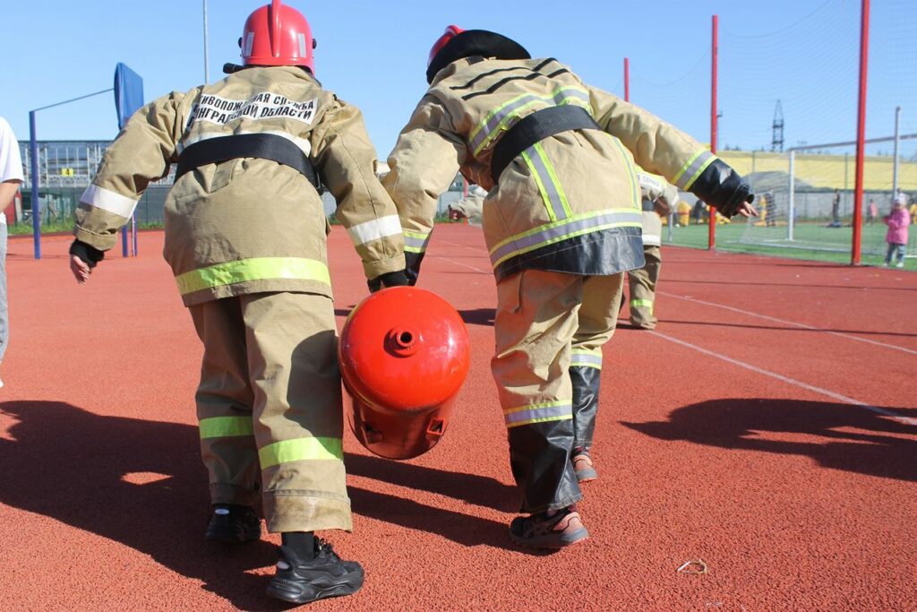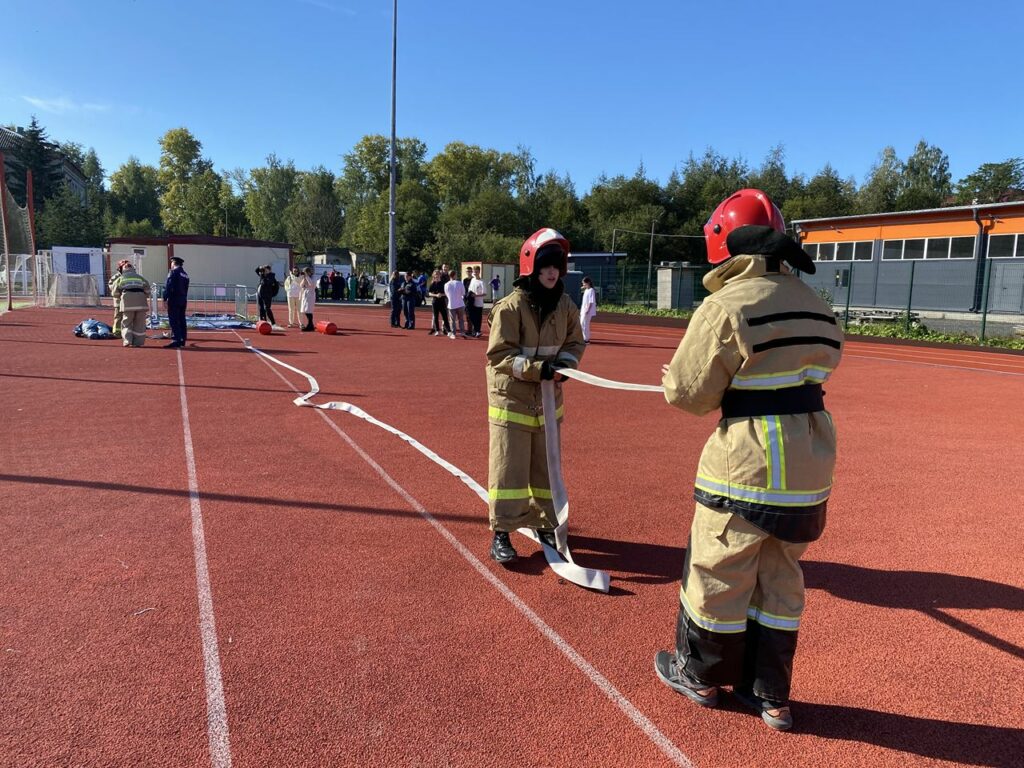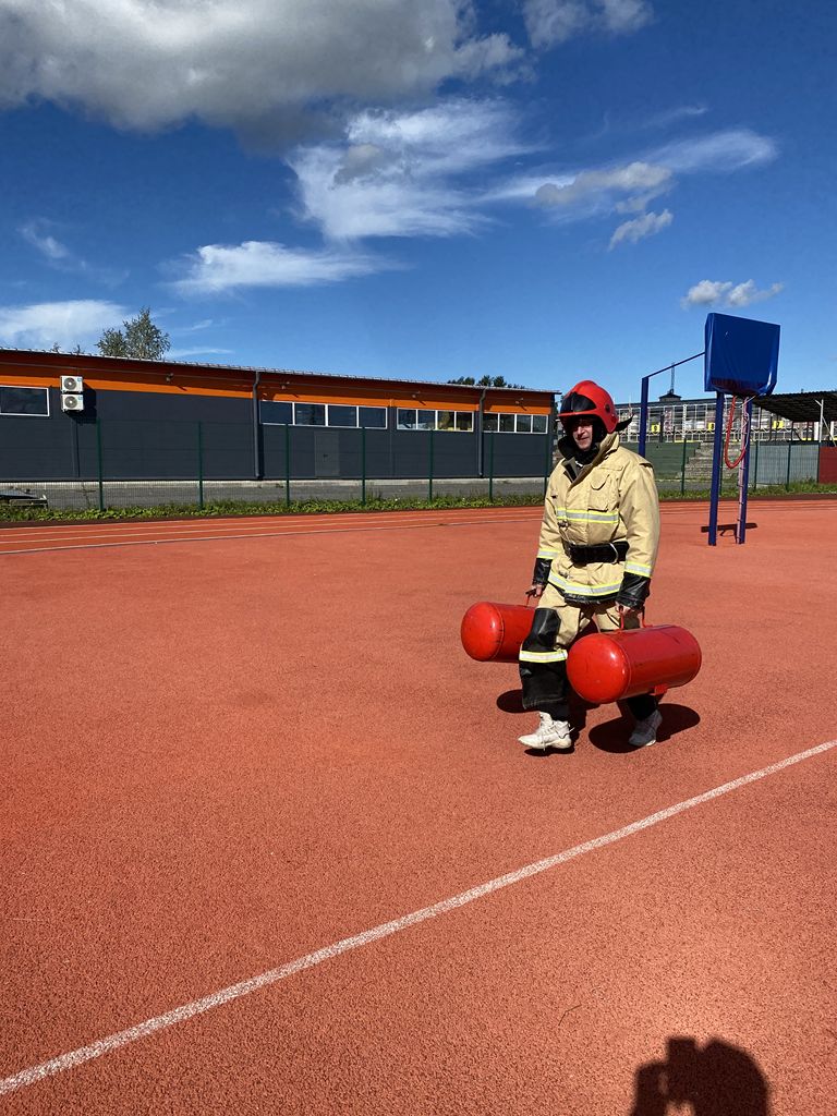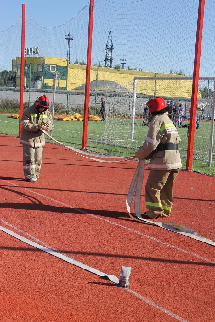 Этап пожарная эстафета был проведен Кировским местным отделения «Всероссийское добровольное пожарное общество», совместно с отделом надзорной деятельности и профилактической работы Кировского района и отрядом государственной противопожарной службы Кировского района. Участникам соревнований необходимо было на время надеть боевую одежду пожарного, построить рукавную линию, пробежать с двумя баллонами по 16 килограмм, и спасти «пострадавшего» весом 1 килограмм, а в конце эстафеты сделать по 10 раз отжиманий (мужчинам) и 10 раз упражнение на пресс (женщинам) после этого время эстафеты останавливалось. В этапе пожарная эстафета лучше всех справились команда «МГА» со временем 3 минуты 07 секунд.