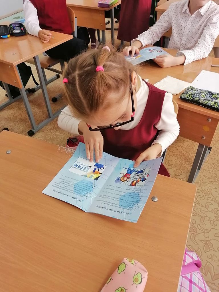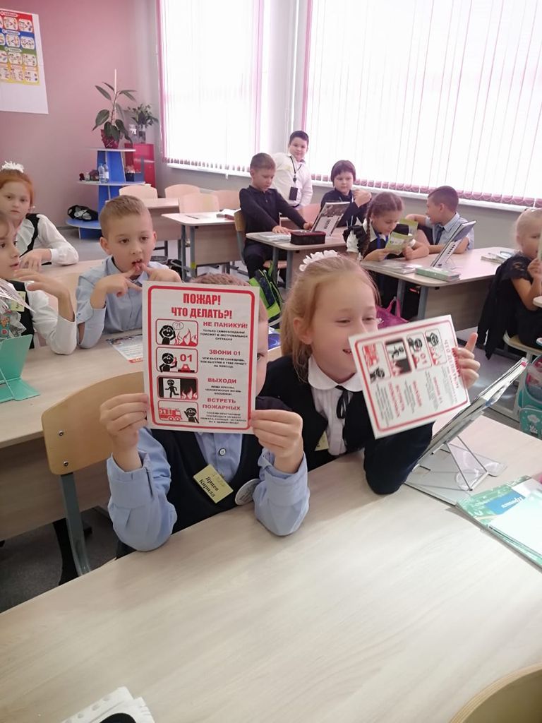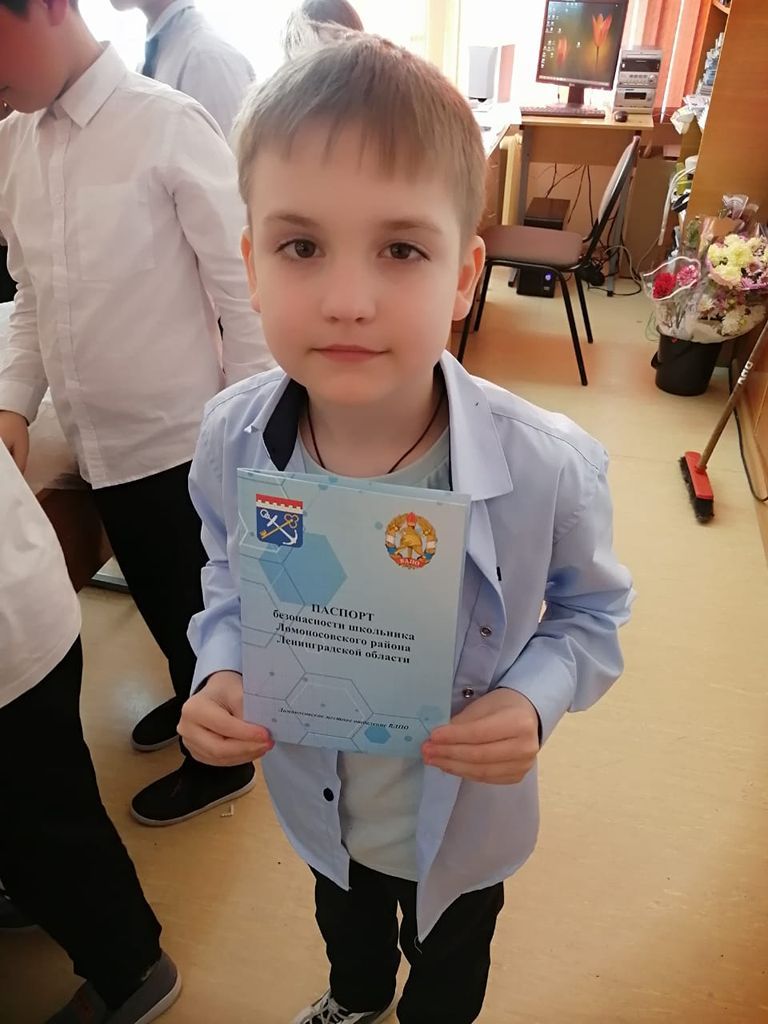 В конце урока всем раздали памятки по пожарной безопасности для изучения дома с родителями и паспорта безопасности школьников Ломоносовского района.