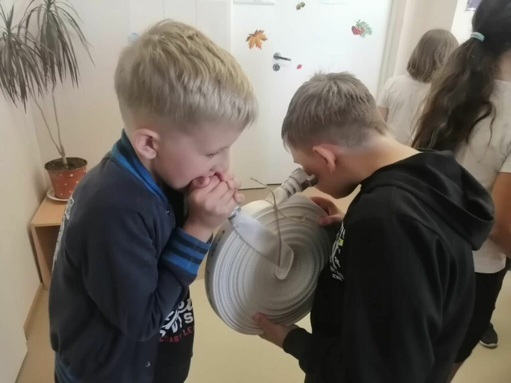 Цель уроков – повышение безопасности детей, совершенствование навыков безопасного поведения при пожаре в школе, дома, на улице. С детьми вспомнили причины возникновения пожаров, проговорили правила поведения при пожаре, вспомнили телефоны служб спасения. Также детям показали боевую одежду пожарных, пожарные рукава, модель пожарного автомобиля.