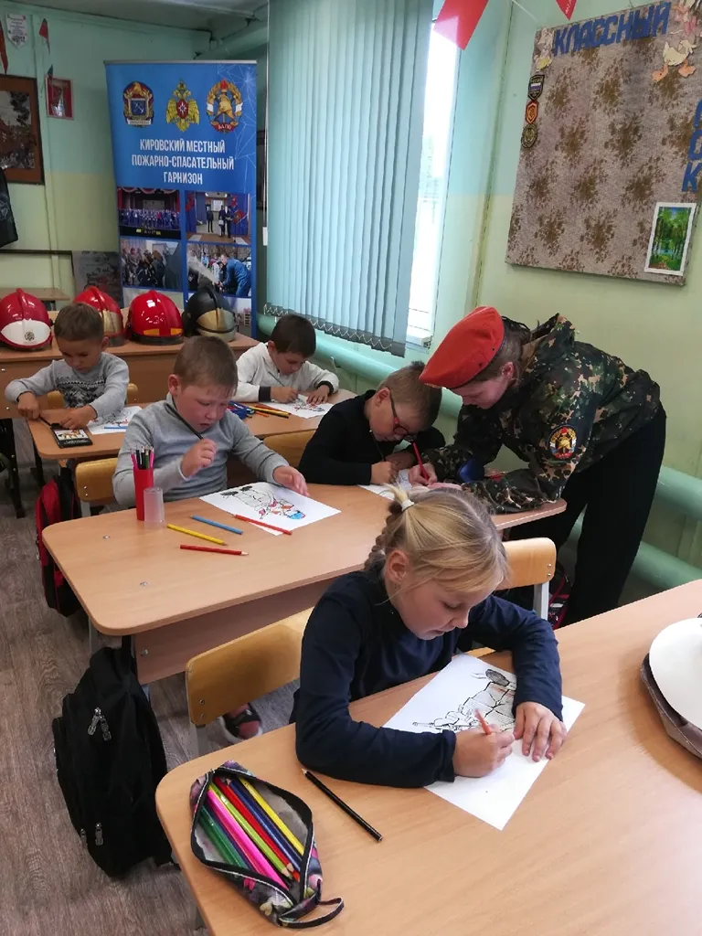 В рамках месячника пожарной безопасности в образовательных организациях Кировского муниципального района Ленинградской области, а также по старой доброй традиции, каждую пятницу, в МКОУ «Суховской основной общеобразовательной школе» добровольный пожарный Суховского сельского поселения Громов Сергей проводит занятия на противопожарную тематику с самыми младшими учениками.