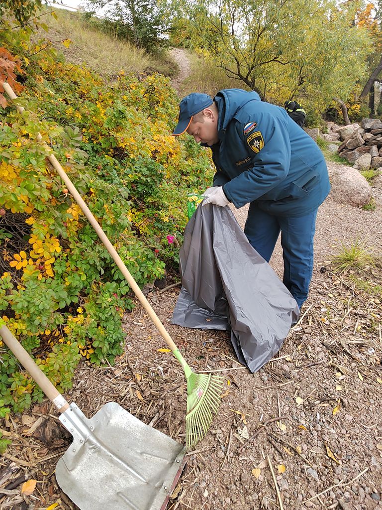 Сотрудники 26 ПСО ФПС ГПС Главного управления МЧС России по Ленинградской области, совместно с представителем из Выборгского местного отделения ВДПО Ленинградской области, приняли участие во Всероссийском субботнике «Зеленая Россия» по очистке прибрежной зоны Петровской набережной.