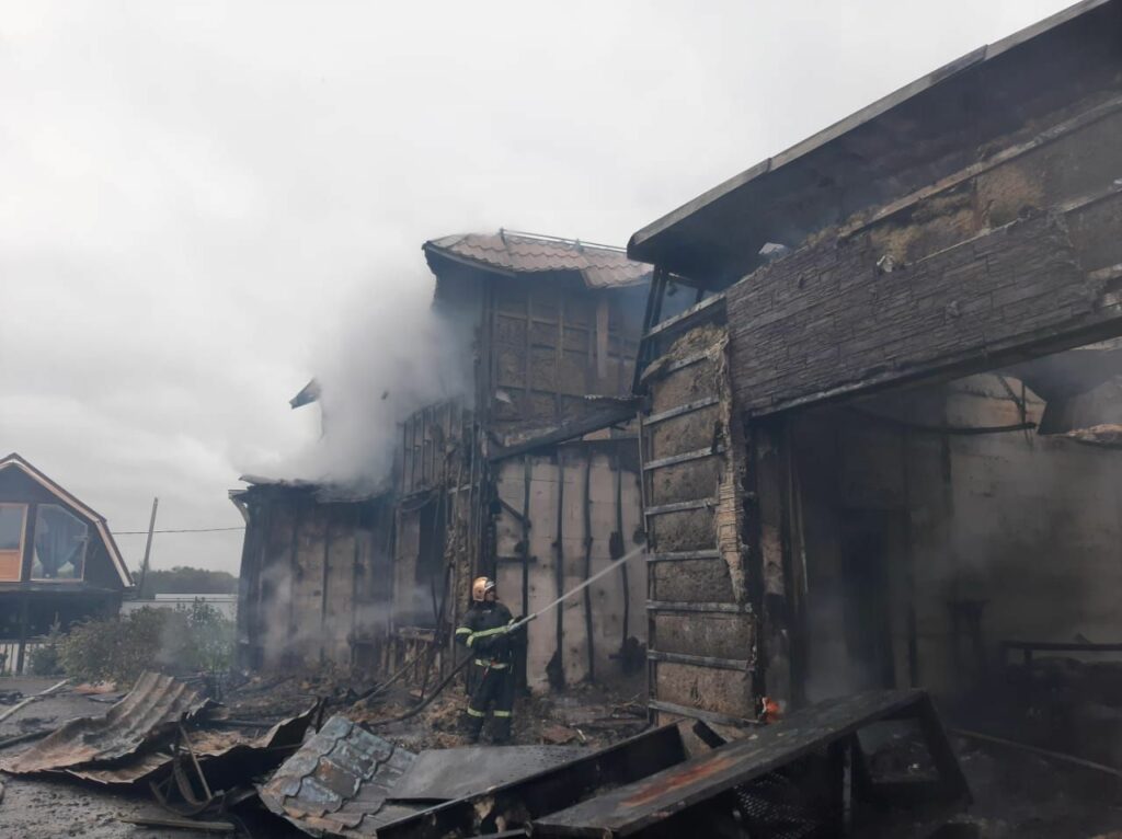 К месту пожара в 15 часов 01 минуту выехала автоцистерна ПЧ ВДПО ЛО. На момент прибытия горел открытым огнем по всей площади жилой, двухэтажный дом размером 8×15 метров, была угроза распространения огня на хозпостройки. В 15 часов 19 минут на тушение и на защиту хозпостроек был подан ствол «Б». В результате пожара произошло обрушение кровли на
