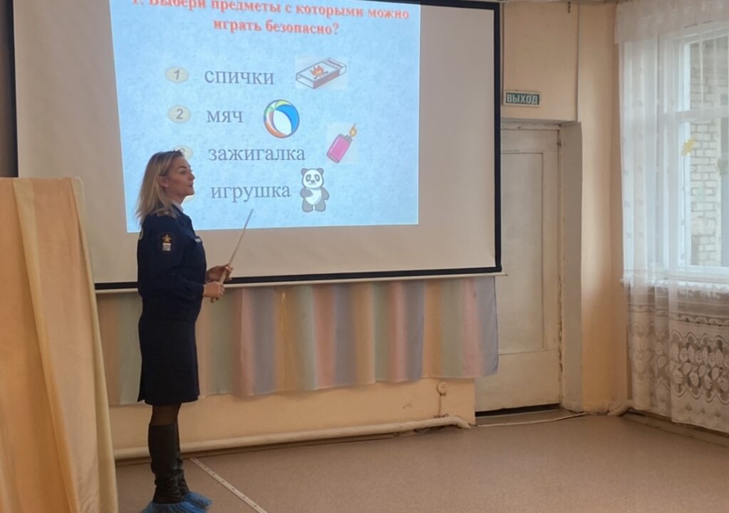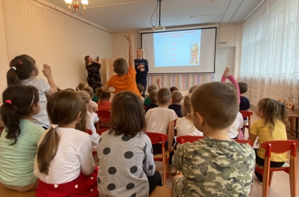 Далее разобрали все основные принципы пожаробезопасного поведения в различных ситуациях — дома, на улице, в незнакомых общественных местах или детском саду. Дети слушали очень внимательно и быстро справились со всеми задачками, которые им предложили решить для закрепления материала.