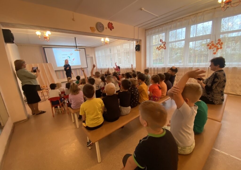В конце занятия, чтобы окончательно расставить все точки над «И» и закрыть любые вопросы, деткам предложили посмотреть увлекательный мультфильм, герои которого на своем примере демонстрировали — как же правильно себя вести и что делать в случае реальной опасности.