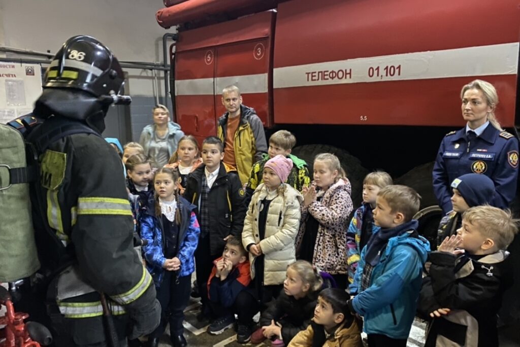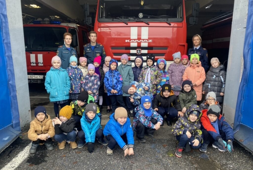 Увлекательная экскурсия состоялась в пожарной части № 86 — в гости к пожарным приехали первоклассники из средней общеобразовательной школы № 4 города Тосно.