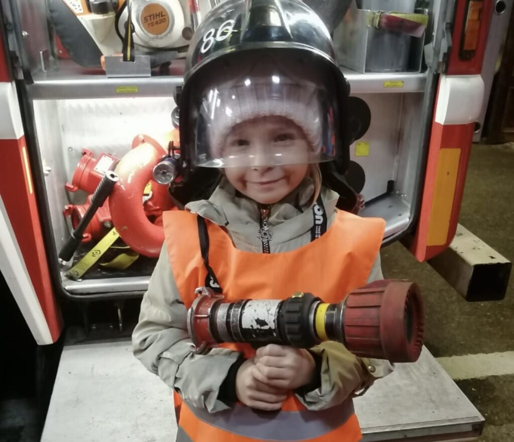 Особый энтузиазм у ребят вызвало посещение ангара с пожарной техникой и машинами — они с любопытством рассматривали всё техническое вооружение, примеряли каски пожарных, и даже — смогли посидеть внутри кабин. Самые смелые даже решились попробовать удержать пожарный ствол, и оказались очень удивлены тому, насколько он тяжелый.