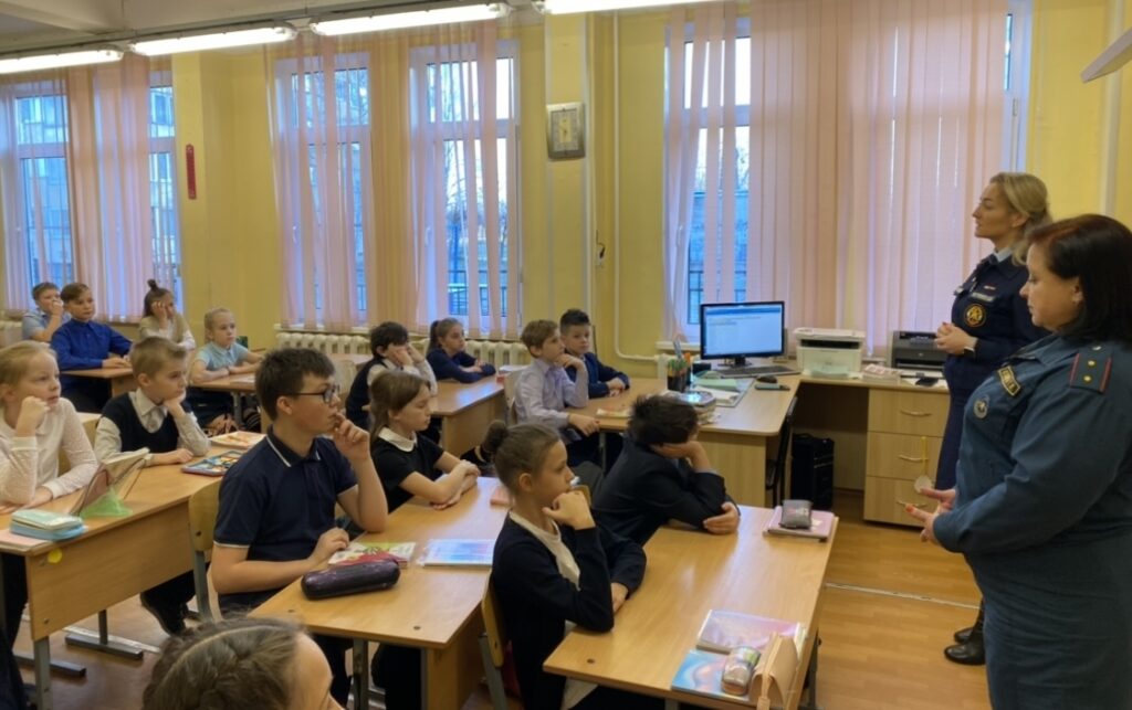 Урок пожарной безопасности прошел с учениками 4 класса в средней общеобразовательной школе № 2 города Никольское.