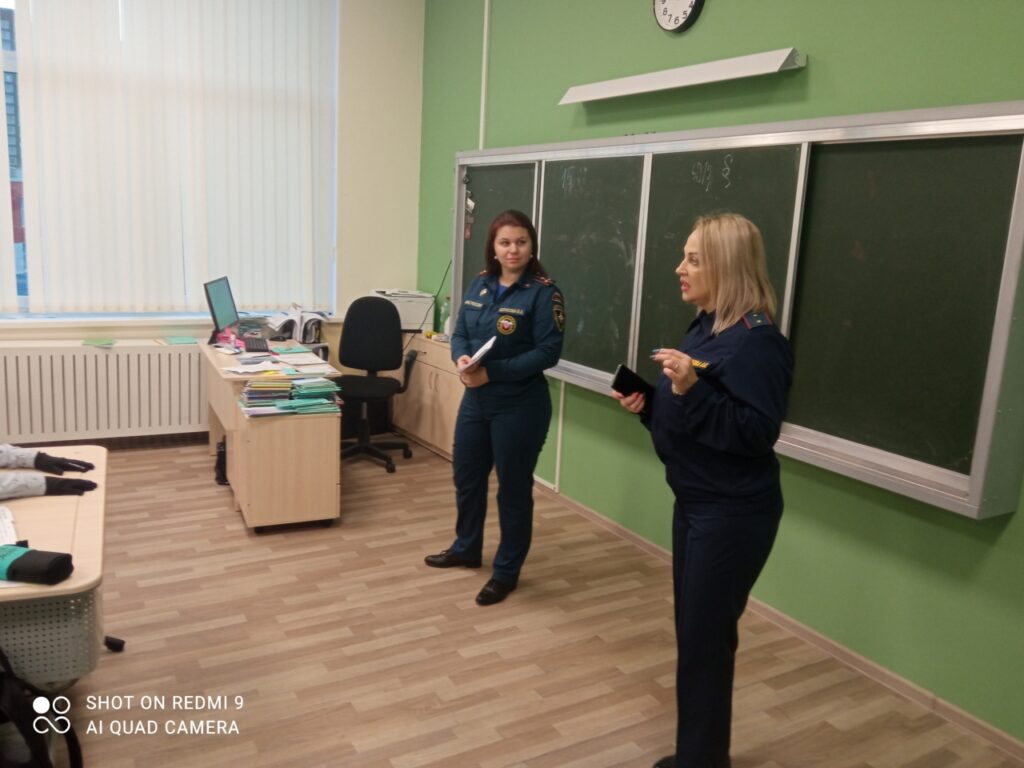 Об основных действиях в случае возникновения пожара или чрезвычайной ситуации школьникам рассказали заместитель председателя местного отделения ВДПО ЛО Миклин В.Н., инструктор противопожарной профилактики отряда государственной противопожарной службы Чеснова В.В. и инспектор отдела надзорной деятельности и профилактической работы Борисова В.Д.