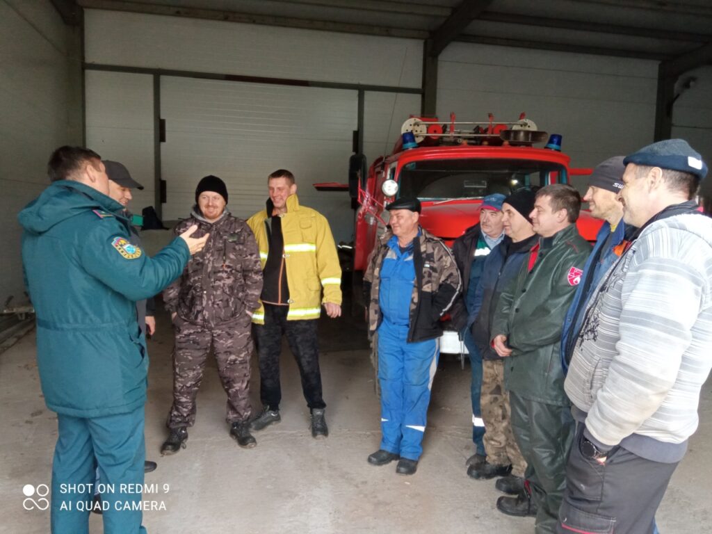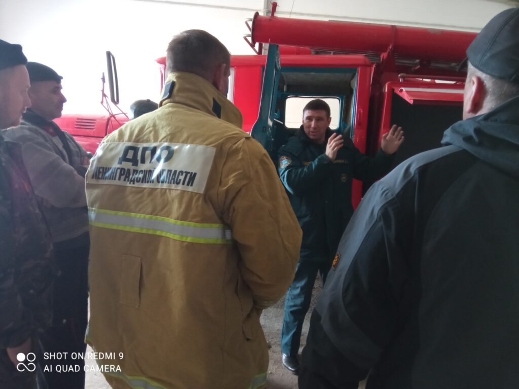 Занятия проходили непосредственно на рабочем месте добровольцев, где стоит пожарная автоцистерна и хранится пожарно-техническое вооружение.