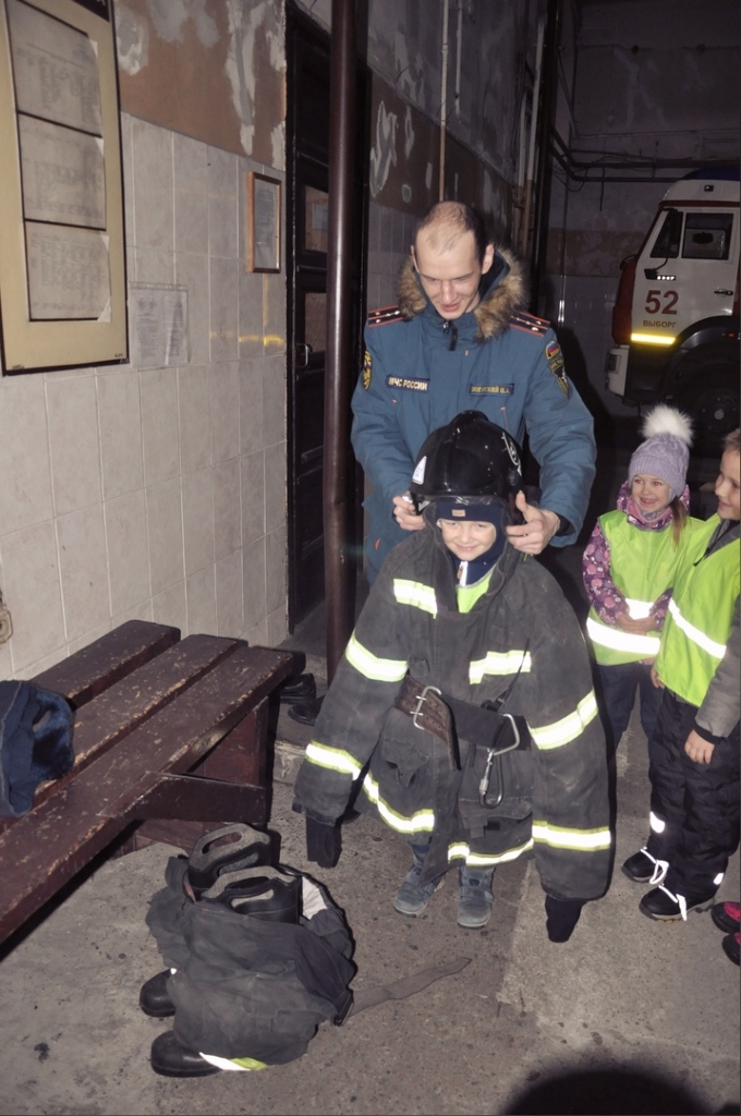 В первую очередь ребят, конечно же, заинтересовали пожарные машины. В боксах для техники ребятам показали предметы боевой одежды, пожарно-спасательный инвентарь. Даже девчонкам было интересно примерить пожарную каску. По счастливым лицам детей было заметно, что у них осталось много приятных впечатлений!