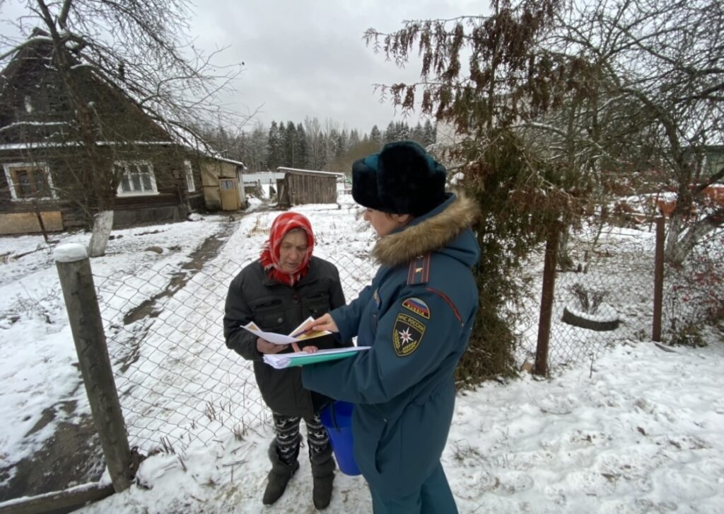 Профилактический рейд по пожарной безопасности был проведен с населением Тосненского района в деревне Новолисино.