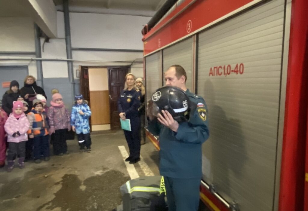 Увлекательная экскурсия прошла в пожарной части № 86 для воспитанников трех подготовительных групп детского сада № 1 города Тосно.