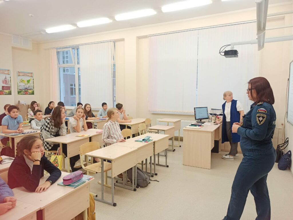 Сегодня в 6 классе Муринского центра образования № 4 в рамках интерактивного курса по пожарной безопасности прошли занятия, в которых приняли участие заместитель председателя совета местного отделения ВДПО ЛО Миклин В.Н., инспектор отдела надзорной деятельности и профилактической работы Борисова В.Д. и инструктор противопожарной профилактики отряда государственной противопожарной службы Всеволожского района Чеснова В.В.